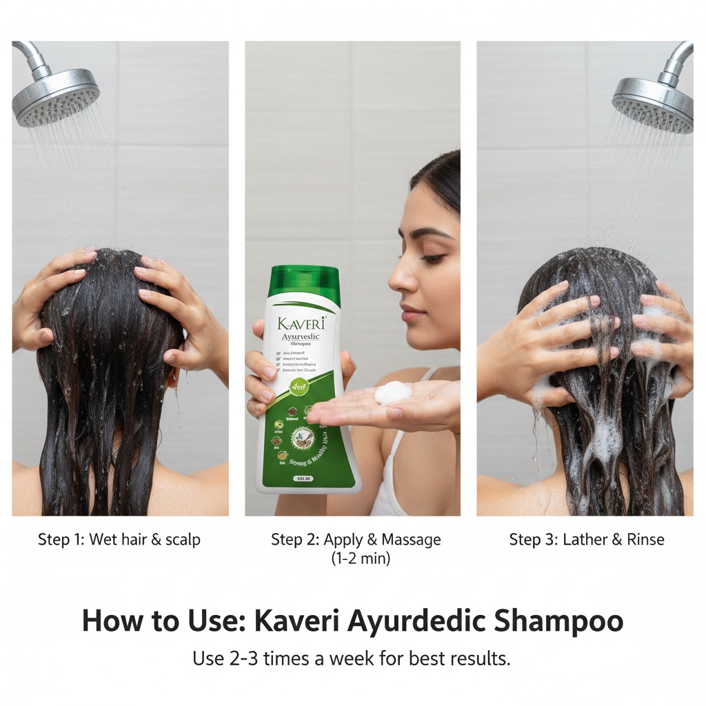 Kaveri Ayurvedic Shampoo 4-in-1 – Anti Dandruff, Hair Fall Control, Prevents Early Greying & Promotes Hair Growth – With Amla, Shikakai, Bhringraj, Reetha & Neem – 200 ml