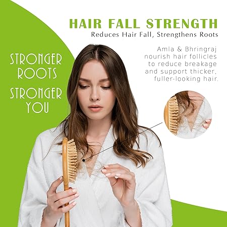 - Reduces Hair Fall & Strengthens Roots – The powerful blend of Amla & Bhringraj nourishes the roots, reducing breakage and hair fall. Regular use supports stronger, thicker, and more resilient hair strands.