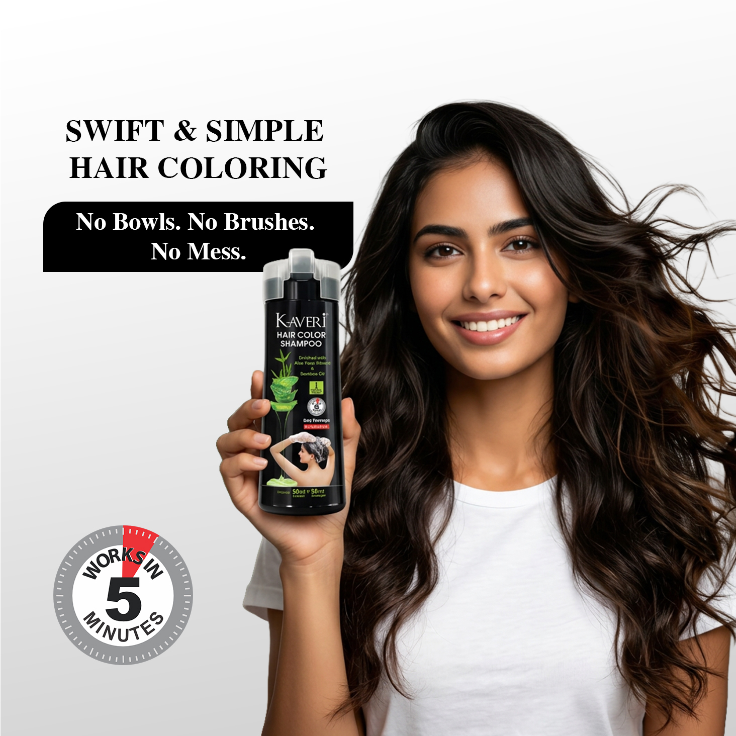 - Kaveri Hair Color Shampoo gives grey coverage with easy application & quick results. Get natural looking hair color in just 5 minutes’ application & make your hair utterly soft and nourished.