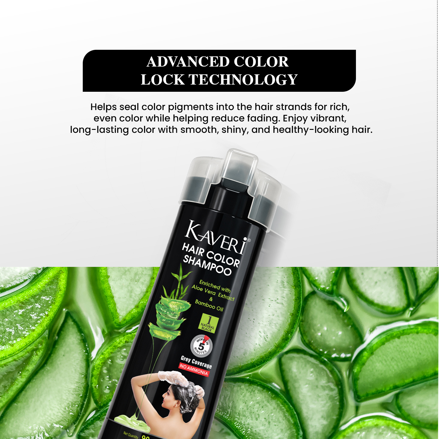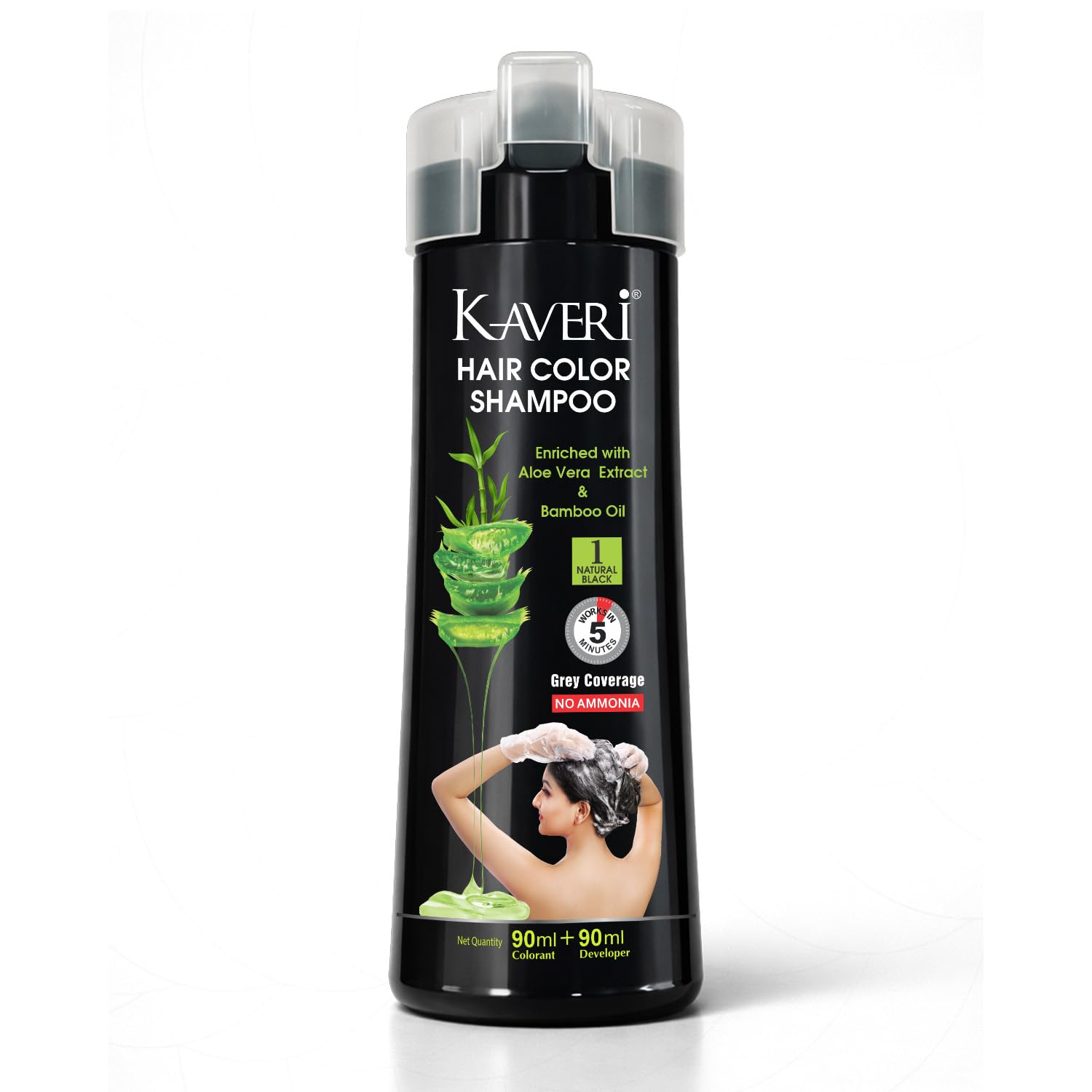 - Kaveri Hair Color Shampoo made with special ingredients, enriched with the goodness of Henna Extract, Aloe Vera Extract & Bamboo Oil which gives color in just 5 minutes. Our unique customized blend of hair color is created so naturally, its herbal elements enhance its quality and packaging.