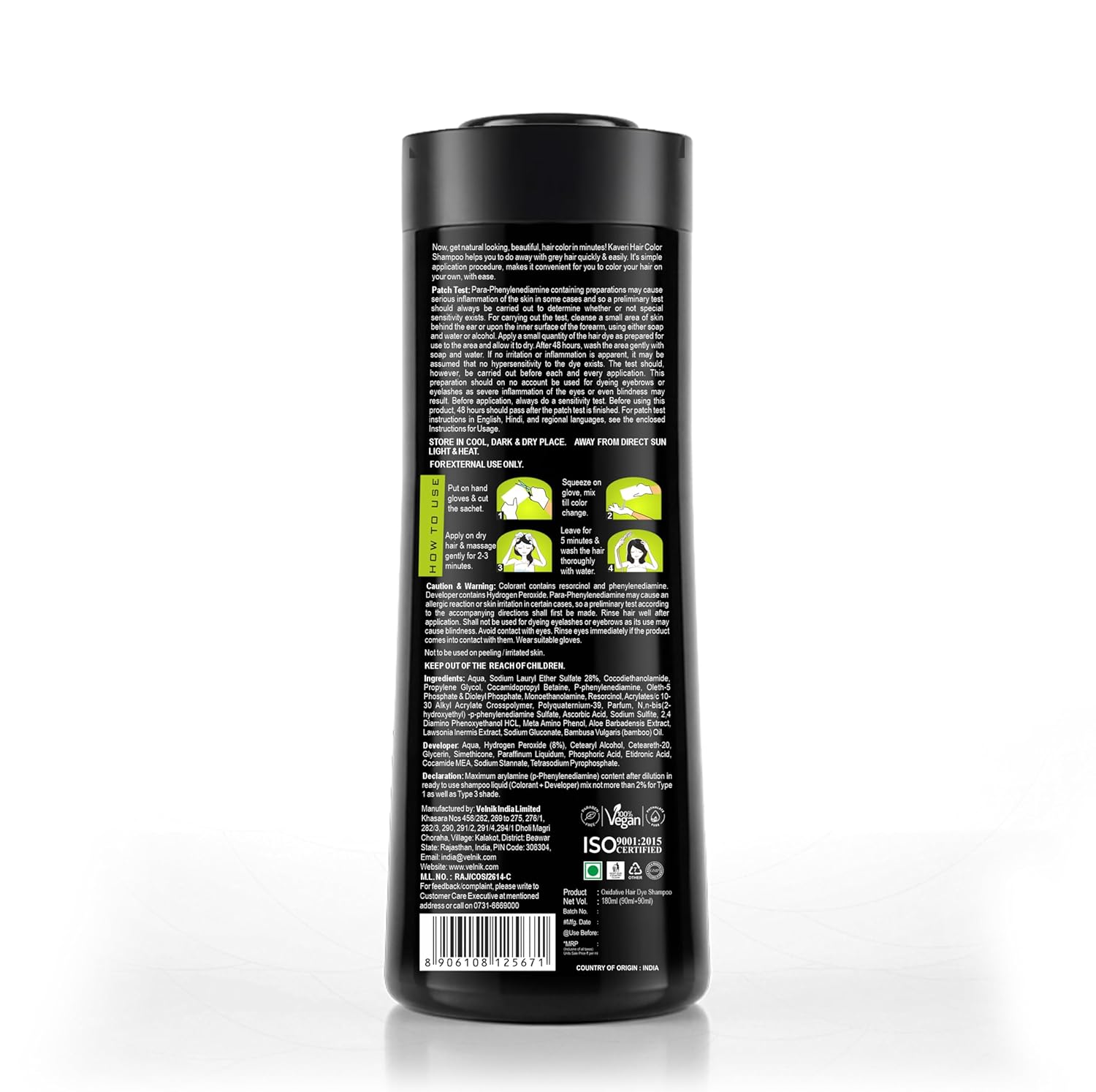 It is made with special ingredients, enriched with the goodness of Henna Extract, Aloe Vera Extract & Bamboo Oil which gives color in just 5 minutes.