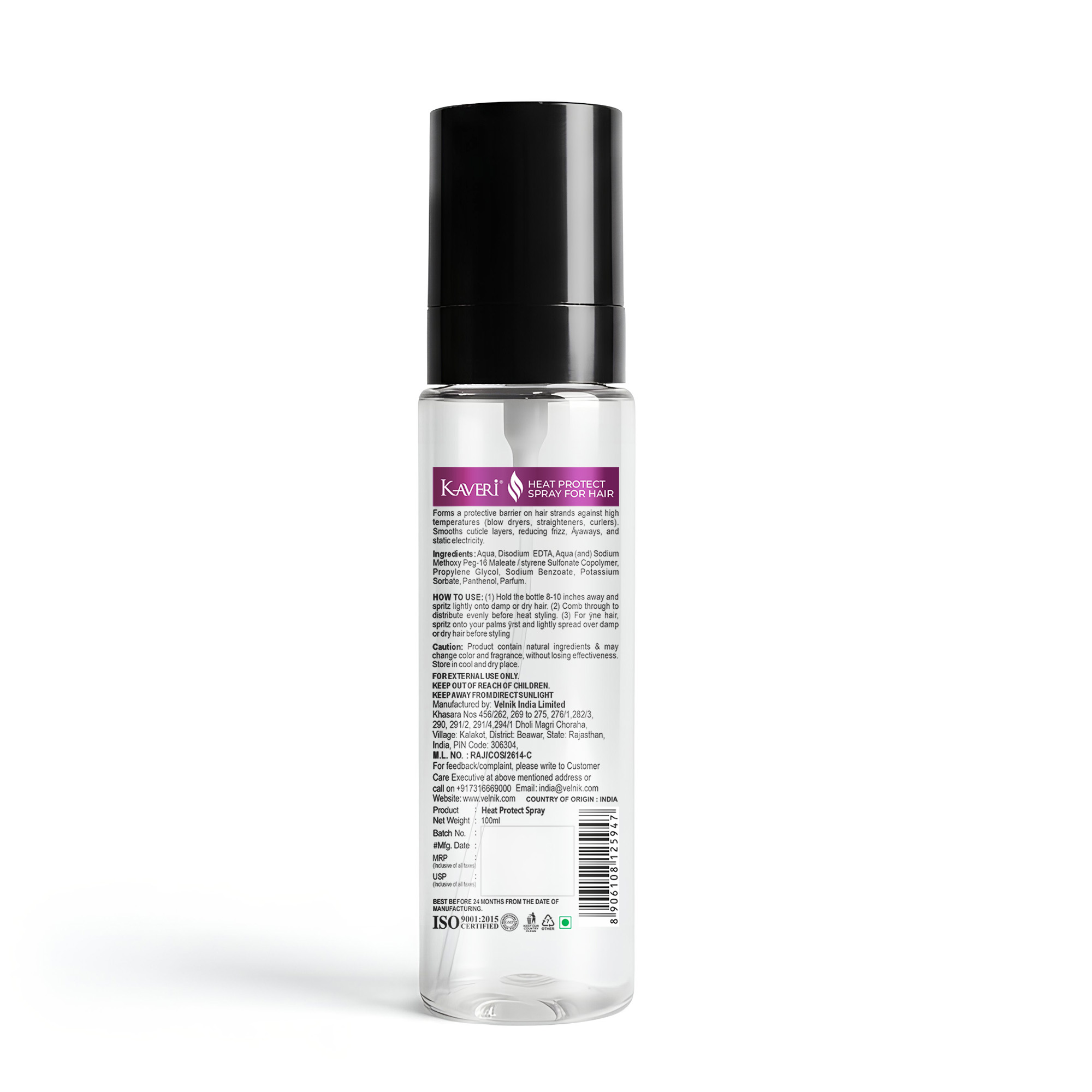 Kaveri Heat Protect Spray for Hair | Heat Protection up to 220°C | Reduces Frizz up to 48 Hours | Adds Shine & Smoothness | Paraben, Sulphate, Alcohol Free | 100 ml