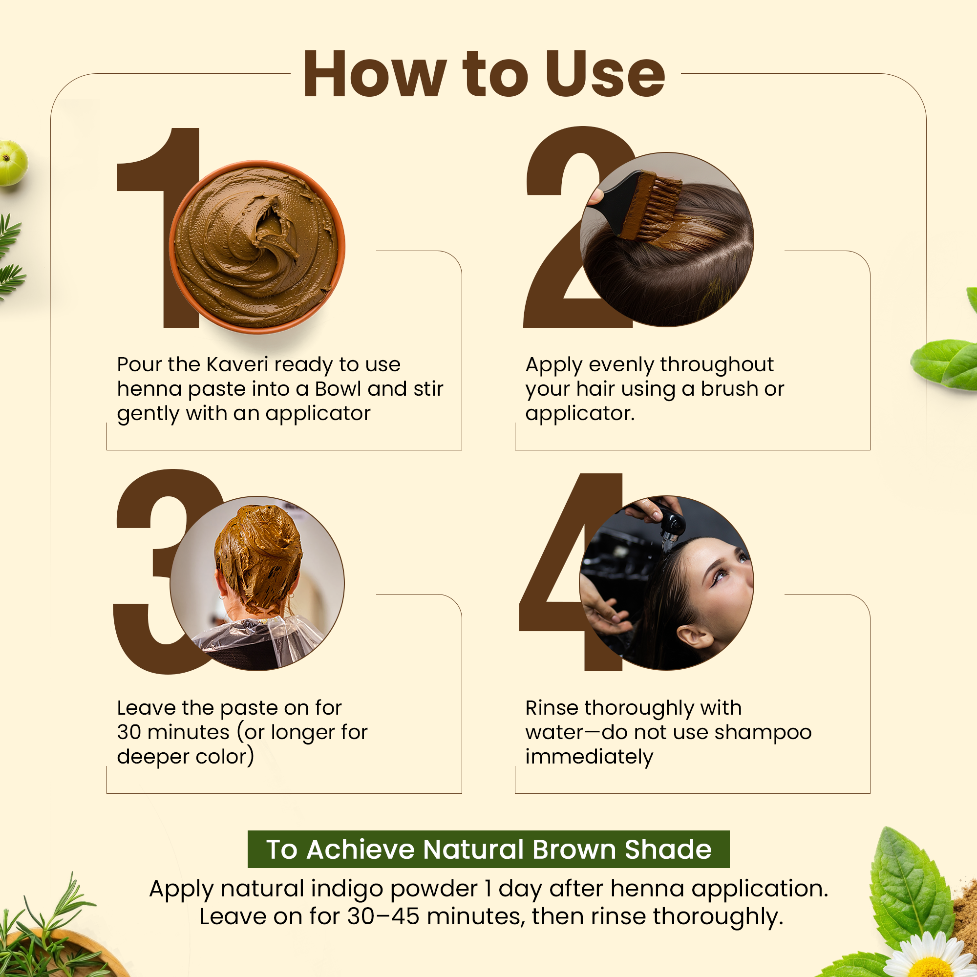 - Pour the Kaveri ready to use henna paste into a Bowl and stir gently with an applicator