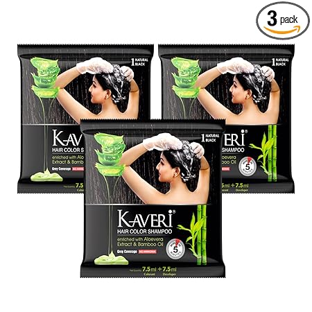 - Enjoy hassle free hair coloring experience with Kaveri Hair Color Shampoo. Kaveri Hair Color Shampoo covers grey hair and gives rich and vibrant color that makes you look gorgeous.