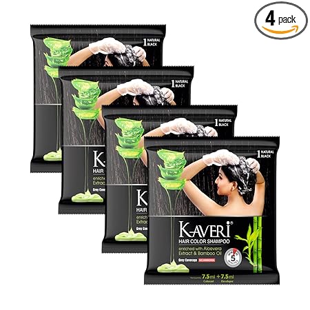 - Kaveri Hair Color Shampoo made with special ingredients, enriched with the goodness of Henna Extract, Aloe Vera Extract & Bamboo Oil which gives color in just 5 minutes. Our unique customized blend of hair color is created so naturally, its herbal elements enhance its quality and packaging.