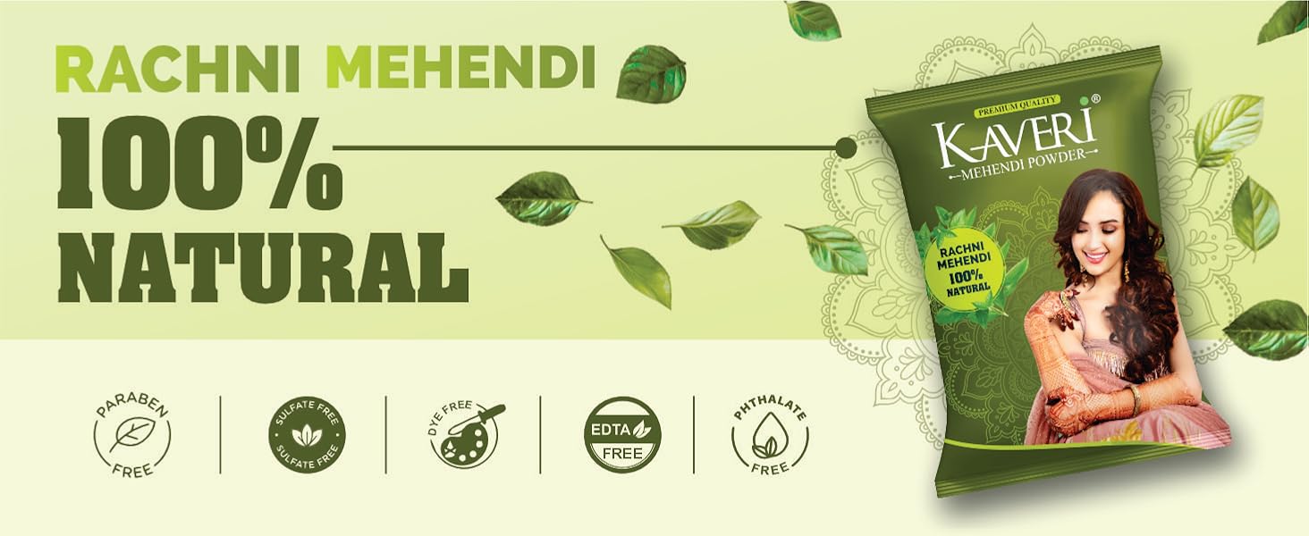 - Peciality – Kaveri Mehendi Powder is 100% natural Product. It is prepared from world’s best premium quality Mehndi leaves cultivated from the farm of SOJAT, Rajasthan.